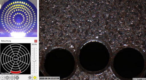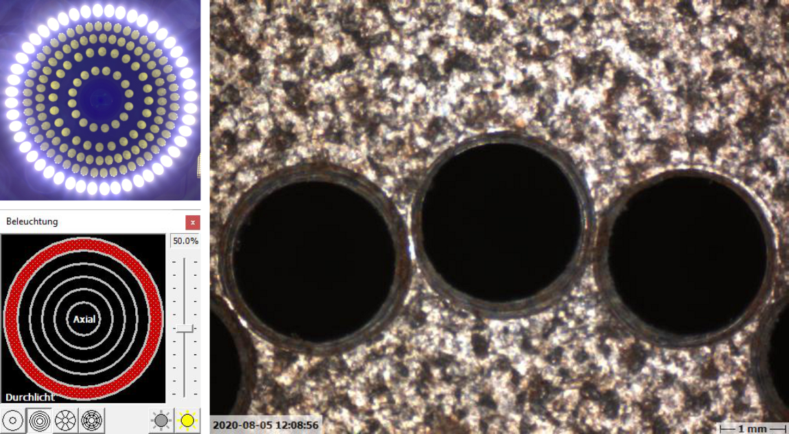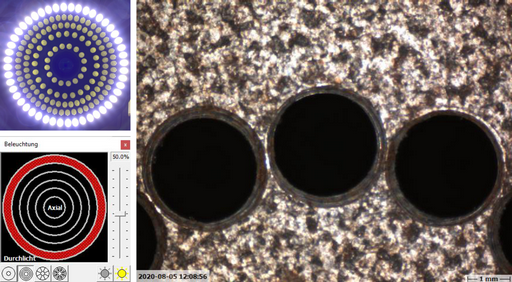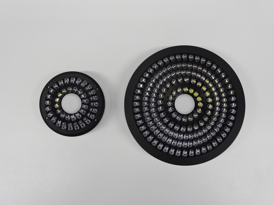 Die programmierbaren Ringlichter von Micro-Vu bestehen wahlweise aus 2 oder 5 Ringen, deren LEDs in jeweils unterschiedlichen Winkeln montiert sind. Das Ringlicht kann komplett, in verschiedenen Ringen, Sektoren oder einzelnen Segmenten in beliebigen Intensitäten angesteuert werden und lässt sich mit dem Profil- und Axiallicht kombinieren.