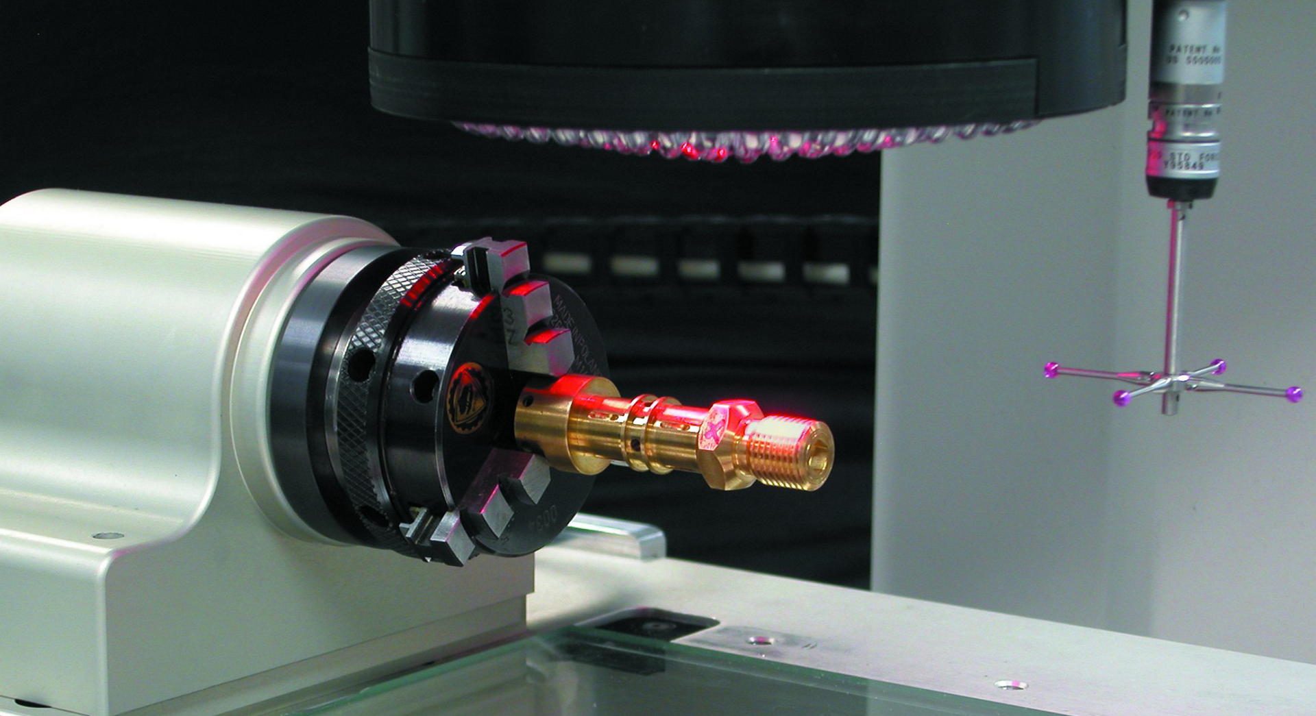 Die indexierende Drehachse von Micro-Vu ermöglicht es, Werkstücke von verschiedenen Seiten zu messen. Sie ist für alle Excel und Vertex Modelle geeignet.